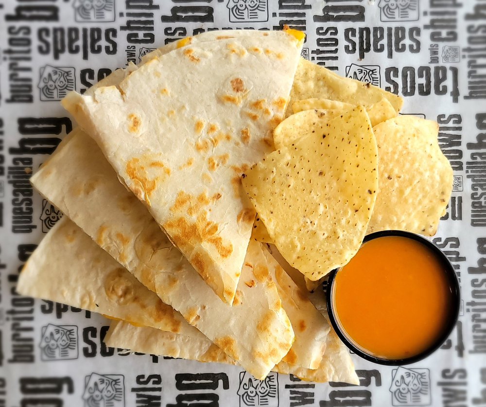 Melted cheese blend on a grilled flour tortilla and served with a side of chips, your choice of salsa, and sour cream